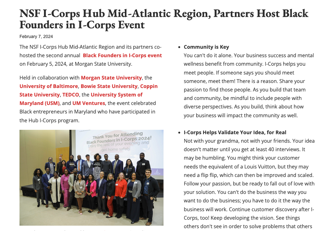 NSF I-Corps Hub Mid-Atlantic Region, 2024